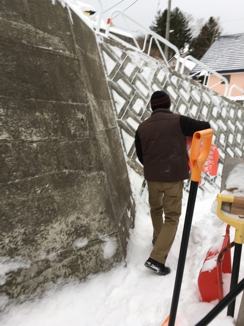 家から出るのがまず難関。左はコンクリートの崖から、右は屋根から雪が落ちてきます。